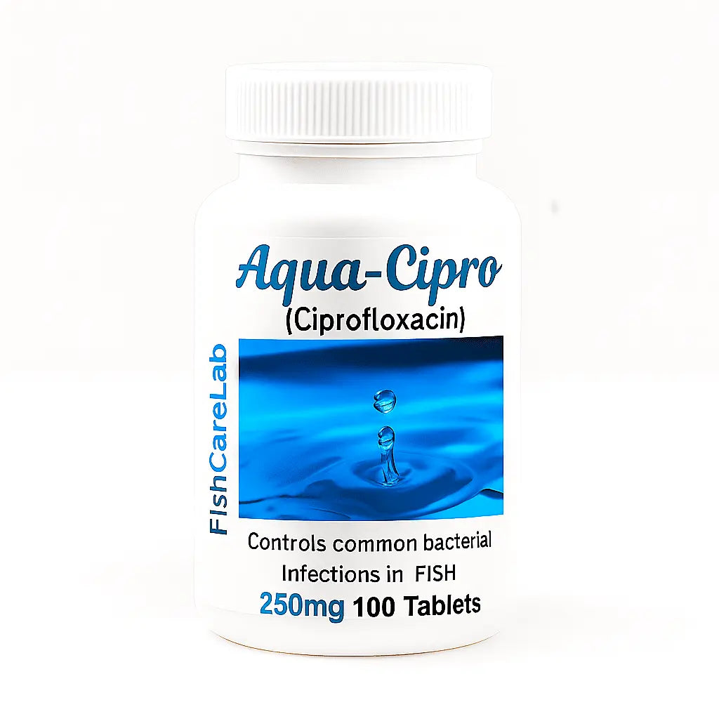 Aqua Cipro (Ciprofloxacin) Fish Antibiotics are a broad-spectrum treatment formulated to help ornamental and aquarium fish recover from bacterial infections. Using Ciprofloxacin, a fluoroquinolone antimicrobial agent, Aqua Cipro targets both Gram-negative and Gram-positive bacteria. It is highly effective against common fish diseases such as fin rot, columnaris, septicemia, gill disease, and dropsy, helping your fish thrive in a clean and healthy aquatic environment.