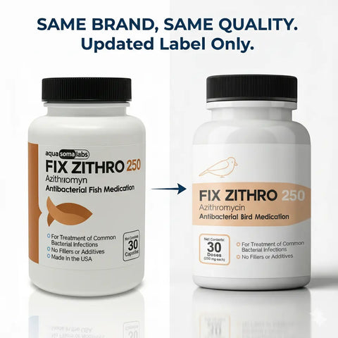 Manufactured by Thomas Labs, Bird And Fish Zithro - Azithromycin 250 mg Tablets are a potent solution for treating a wide range of bacterial infections in both pet birds AND aquarium fish. This 30-count bottle provides a convenient and effective treatment option for various bacterial diseases. Explore our range of Azithromycin for birds and fish for different dosage options. Need a different type of antibiotic? We have a wide selection to choose from.